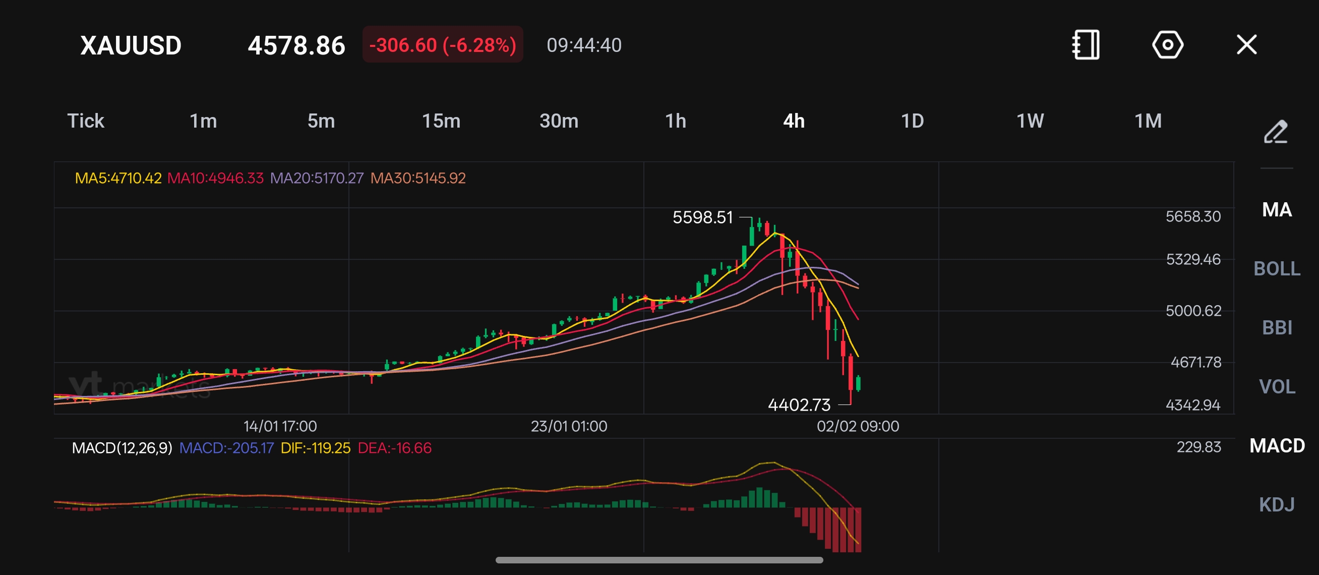 XAUUSD is currently trading around the key psychological level of $4,500. This level is crucial for gold as if it fails to hold, it could extend its losses further. As seen in the price action below, it went to a low point of $4402 on Monday but quickly rejected as this is a strong support level.