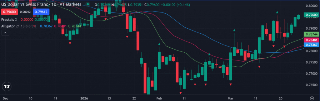 من الناحية الفنية، يشير استمرار صعود الفرنك السويسري لعدة جلسات متتالية إلى وجود زخم شرائي واضح في السوق خاصة بعد أن تمكنت العملة من تجاوز مستويات مقاومة كانت تشكل حاجزا أمام الصعود خلال الأسابيع الماضية ، وهذا التحرك قد يمهد لموجة صعود إضافية على المدى القصير ، خاصة إذا استمرت حالة القلق في الأسواق العالمية أو شهدت أسواق الأسهم موجة تصحيح جديدة تدفع المستثمرين إلى الأصول الآمنة ، وأن أي تحسن مفاجئ في شهية المخاطرة أو صدور بيانات اقتصادية إيجابية من الاقتصادات الكبرى قد يؤدي إلى تخفيف الطلب على العملات الدفاعية، ما قد يحد من وتيرة ارتفاع الفرنك السويسري