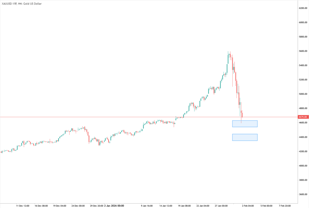 لم يقتصر تأثير إشارة السياسة النقدية على زعزعة استقرار أزواج العملات فحسب، بل حطمت أيضاً زخم التداول في الأصول المادية. فقد كان الذهب، طوال معظم شهر يناير، يُعتبر الملاذ الأمثل ضد “تخفيض قيمة العملة” من قبل الاحتياطي الفيدرالي وتصاعد التوترات التجارية.