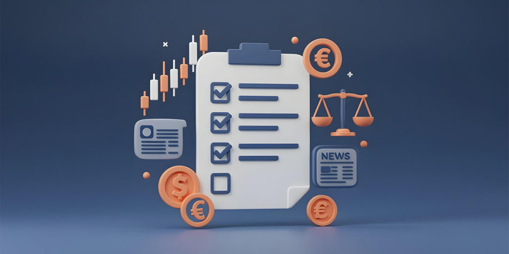 A trading checklist is a personalized list of factors you’d review before, during, and after trades.Amid high volatility, especially in the forex market, a checklist becomes a vital tool for controlling emotions and avoiding impulsive moves. It works as a filter, highlighting profitable trades while weeding out unnecessary risk.