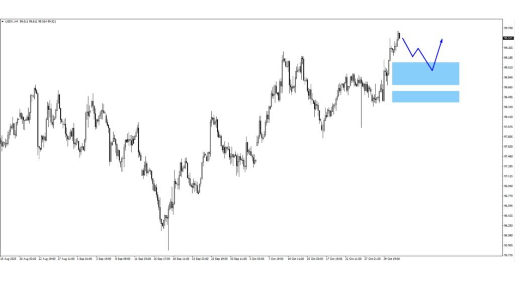 - US Dollar Index (USDX) rebounded toward 99.00–100.00