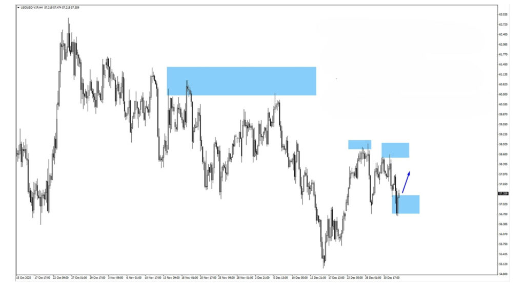 After breaking down from the 58.50 monitored resistance zone, US Oil swept liquidity at 56.716 before rebounding higher. To assess whether upside momentum can sustain, watch price action on a retest of 57.75 or 58.18. Ongoing geopolitical developments around Venezuela’s leadership may remain a short-term volatility catalyst.