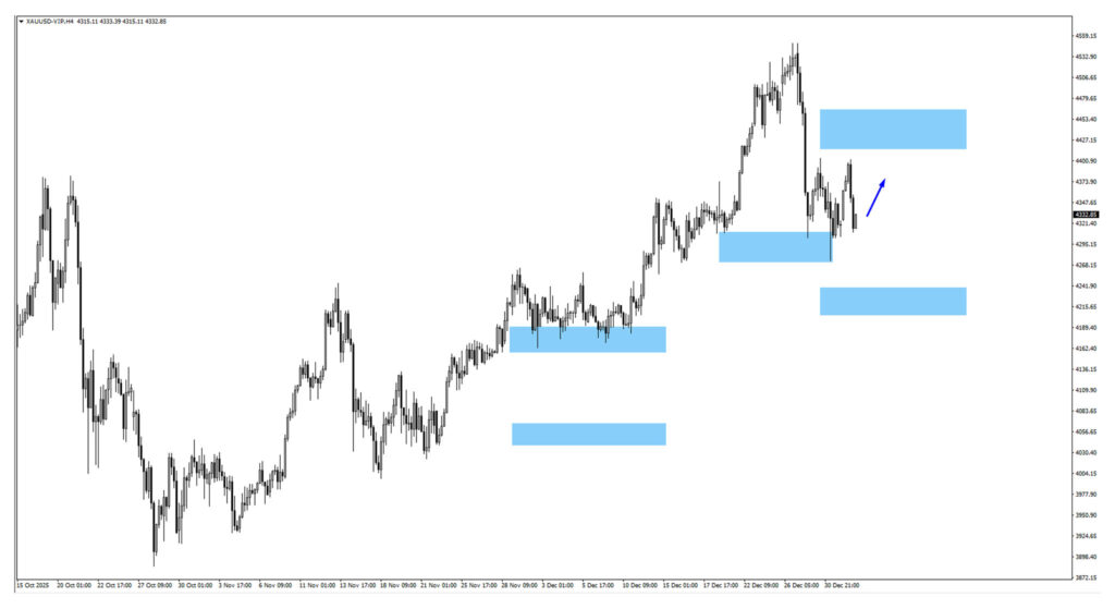 Gold is consolidating after rallying from the 4,290 monitored demand zone, signaling a pause following strong upside momentum. If the price resumes higher, watch 4,445 as potential resistance. Pullbacks toward 4,215 may attract dip buyers amid heightened uncertainty.