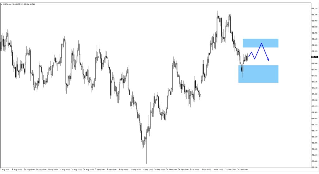 Markets begin the week cautiously as the US dollar index (USDX) consolidates near 98 after rebounding modestly from last week’s lows. Investors are reassessing whether the continued strength in US data could delay the onset of policy easing into 2026.
