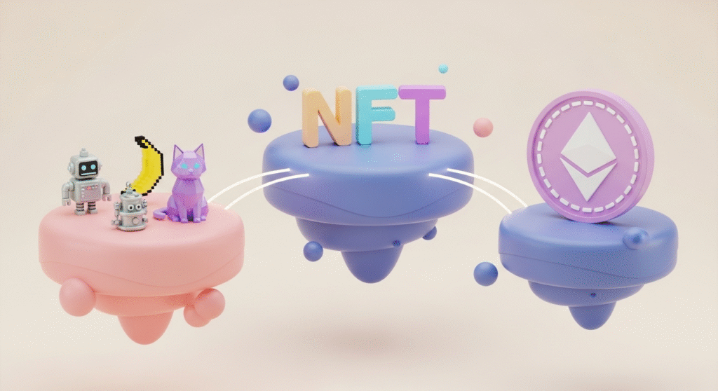 대체 불가능 토큰(NFT)은 한때 미술 경매, 유명인 홍보, ‘디지털 금’ 열풍의 상징이었습니다. 투기 열기는 잦아들었지만 NFT는 사라지지 않았습니다. 지금은 더 넓은 블록체인 경제에서 ‘디지털 소유권(온라인에서 무엇을 내 것이라고 증명하는 권리)’, ‘온라인 커뮤니티(온라인 모임과 팬층)’, ‘프로그램으로 움직이는 금융(규칙을 코드로 넣어 자동 실행되는 금융)’이 만나는 지점에서 역할을 하고 있습니다.
