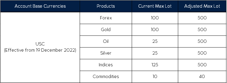 To provide you with a better trading environment, VT Markets will increase the maximum lot size of certain products on 19 December 2022.