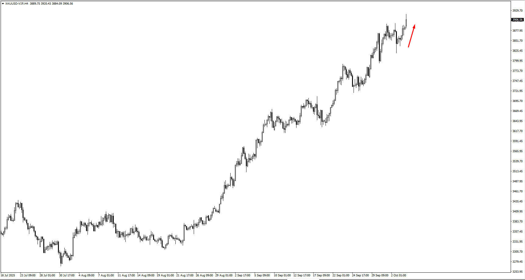Gold surged to a fresh all-time high, testing the USD 3,915 resistance area as investors sought safety amid global rate uncertainty. A breakout above this level could open the door toward USD 4,075, though the move appears stretched after a strong run. Traders are closely watching for profit-taking signals before committing to new longs.