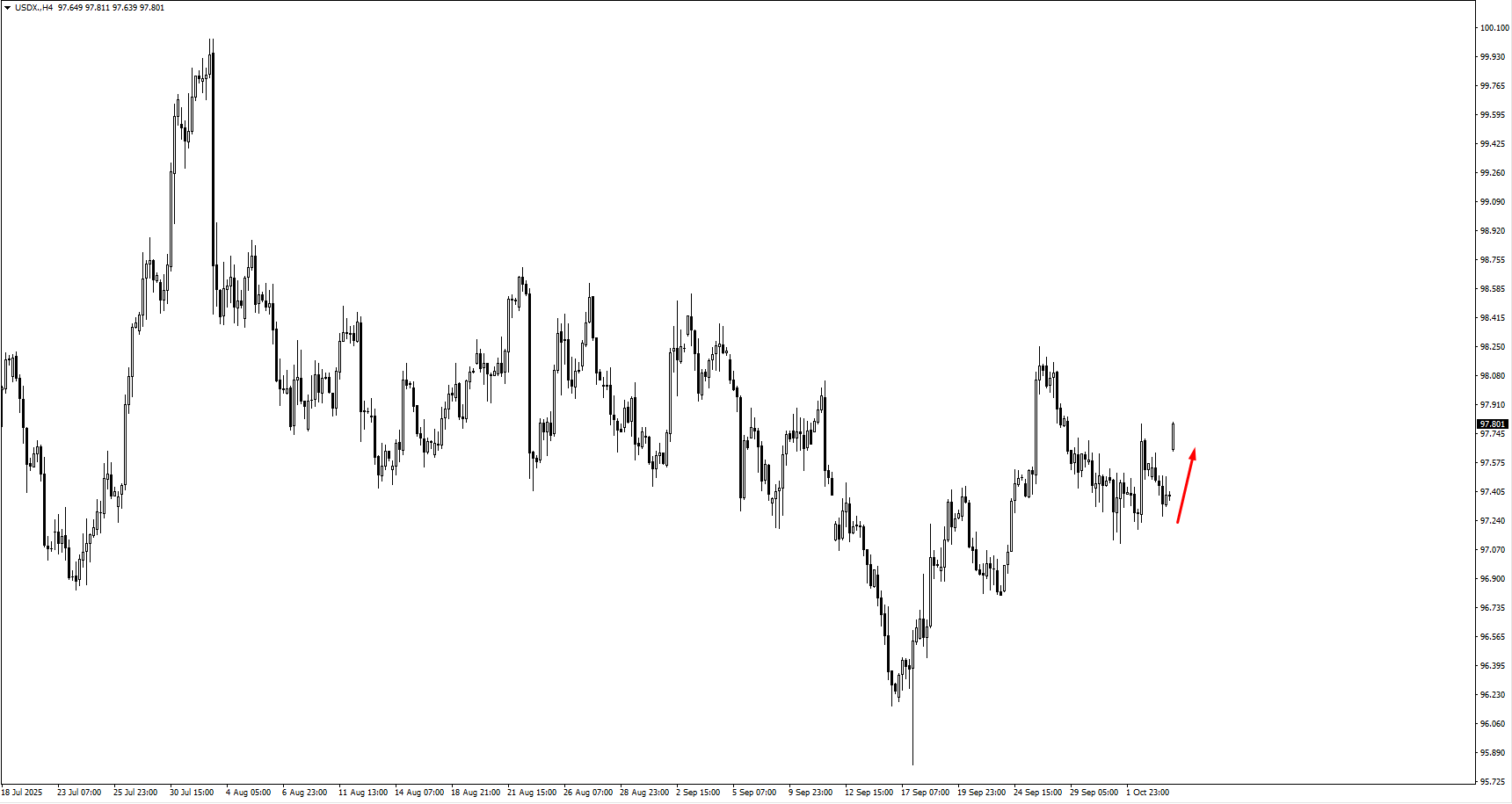 USDCHF, meanwhile, slipped from the 0.8000 zone and now trades within a consolidation band. Should price dip further, buyers are expected to defend the 0.7915 level to maintain upward structure.