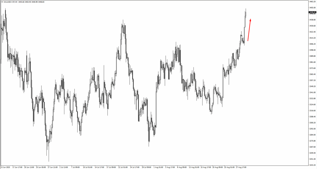 Gold, by contrast, has found traction. After pausing around 3,420 dollars, it pressed higher, with the next challenge set at 3,470 dollars.