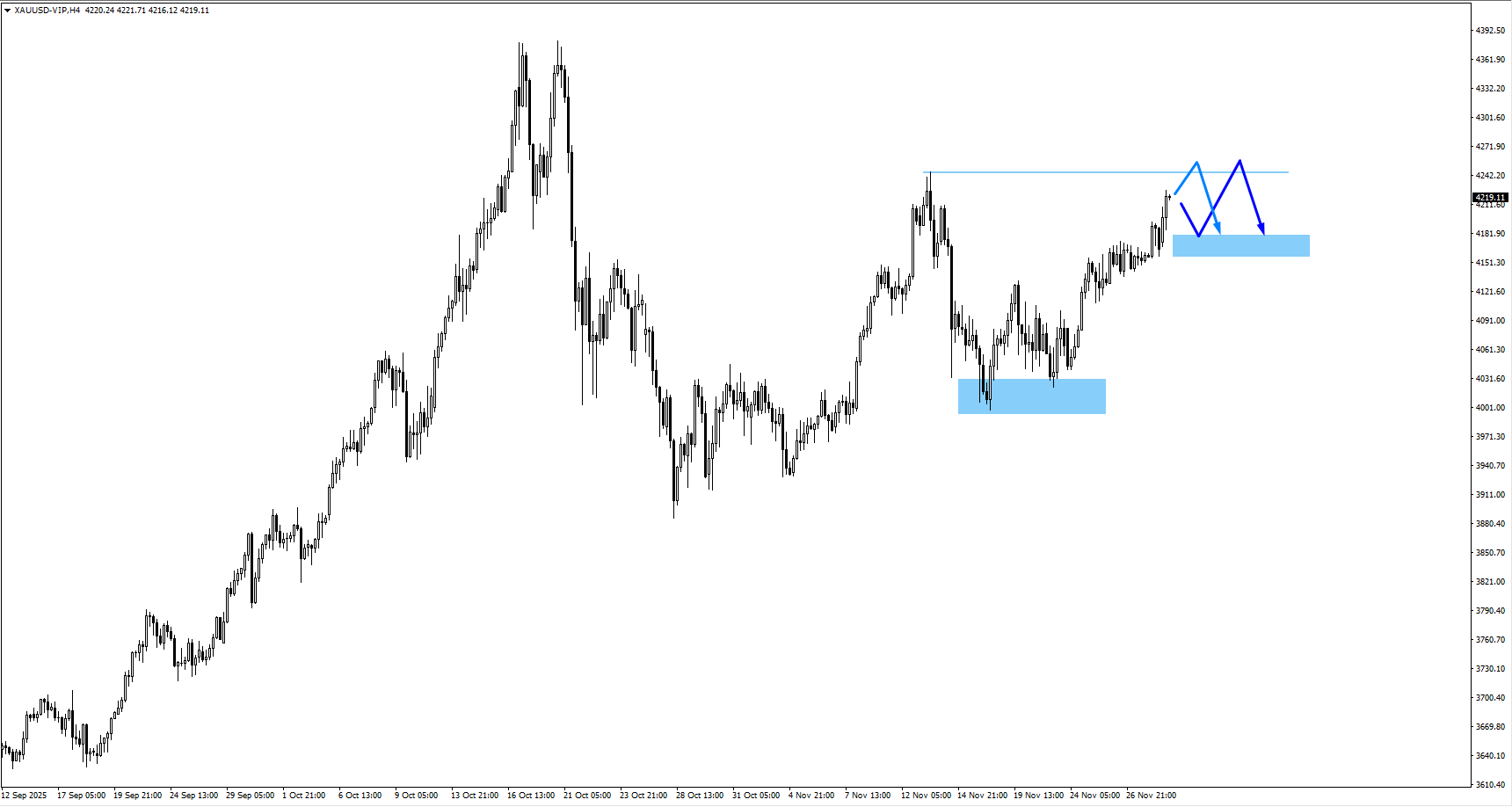- Price could extend toward the 4,245 resistance zone before any corrective pullback, especially if upcoming US data shows further cooling in services activity or hiring.