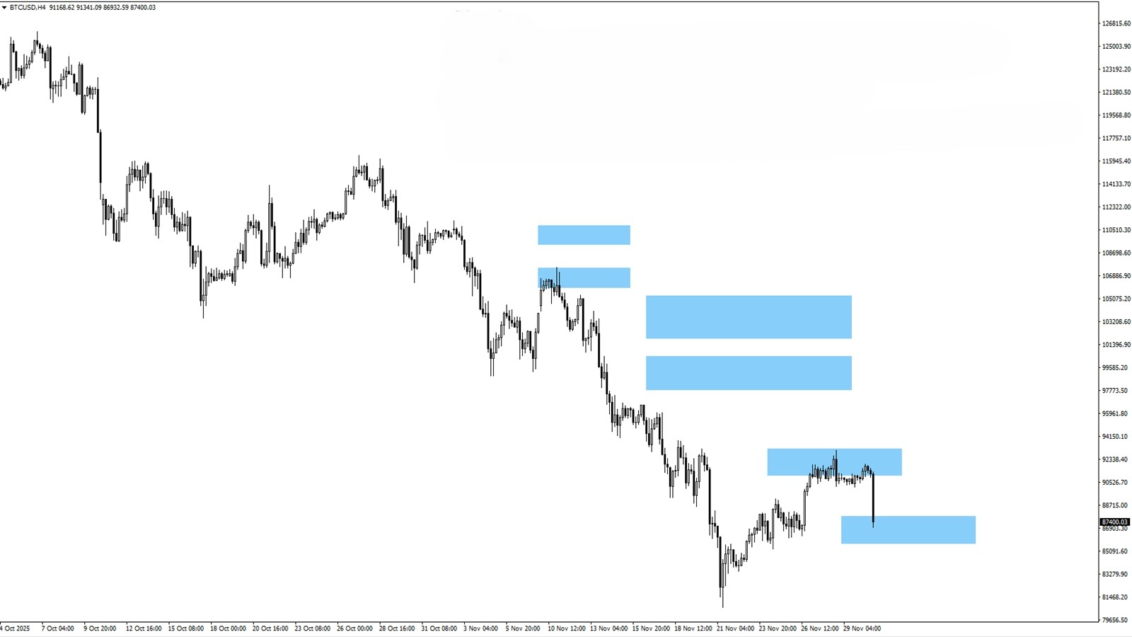 - Price is now testing the 87,070 monitored area, a key level that aligns with broader uncertainty ahead of major US data releases this week (ISM Services, ADP jobs, and PCE).