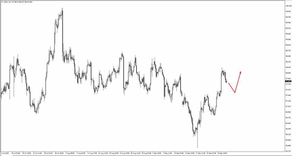 The dollar is still steering the wheel. USDX climbed from 96.60 and cleared 98.051 before pausing. The pullback is orderly so far, and the bias holds as long as 97.00 remains intact. Dips into the 97s are still the place to watch for buyers.