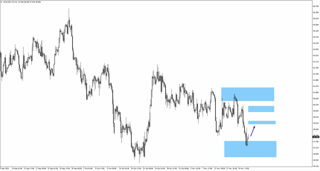 • Resistance sits at $61.05, with potential pullback zones near $59.05.