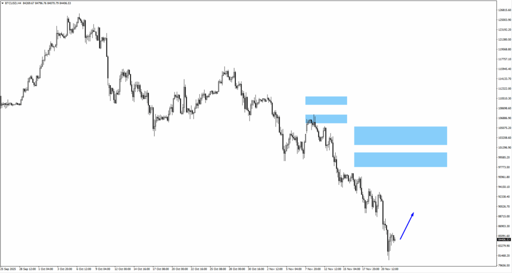 Lower yields boosted equities and weighed on the dollar. The 2-year Treasury yield slipped toward 3.5%, while AI and tech names led the rally. Bitcoin and Ethereum’s selloff has weakened, aligning with the broader mild “risk-on” rotation driven by softer yields and rising expectations of a December rate cut.