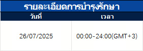 ด้วยความมุ่งมั่นในการให้บริการที่น่าเชื่อถือที่สุดให้แก่ลูกค้าของเรา เราจึงจะมีการบำรุงรักษาระบบในสุดสัปดาห์นี้
