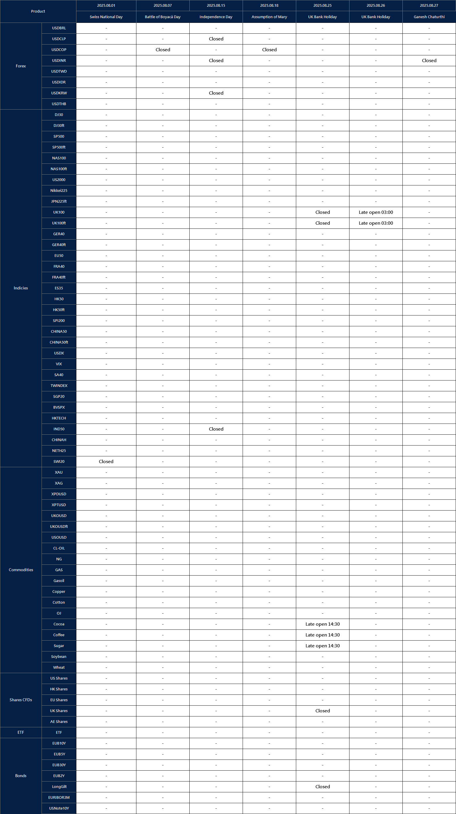 ประกาศแจ้งการปรับเปลี่ยนเวลาการเทรดในช่วงวันหยุด