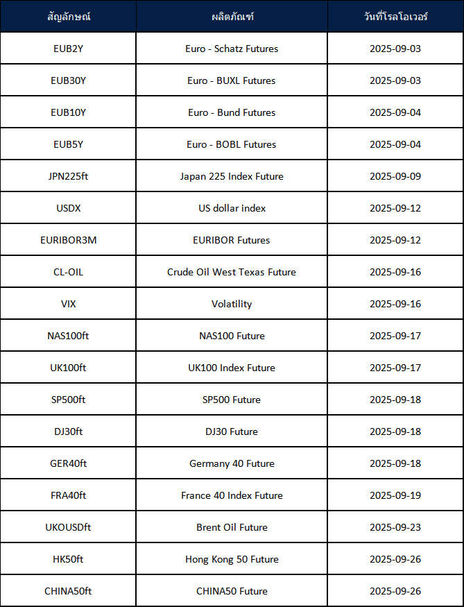 ประกาศการโรลโอเวอร์ของ Futures เดือนกันยายน